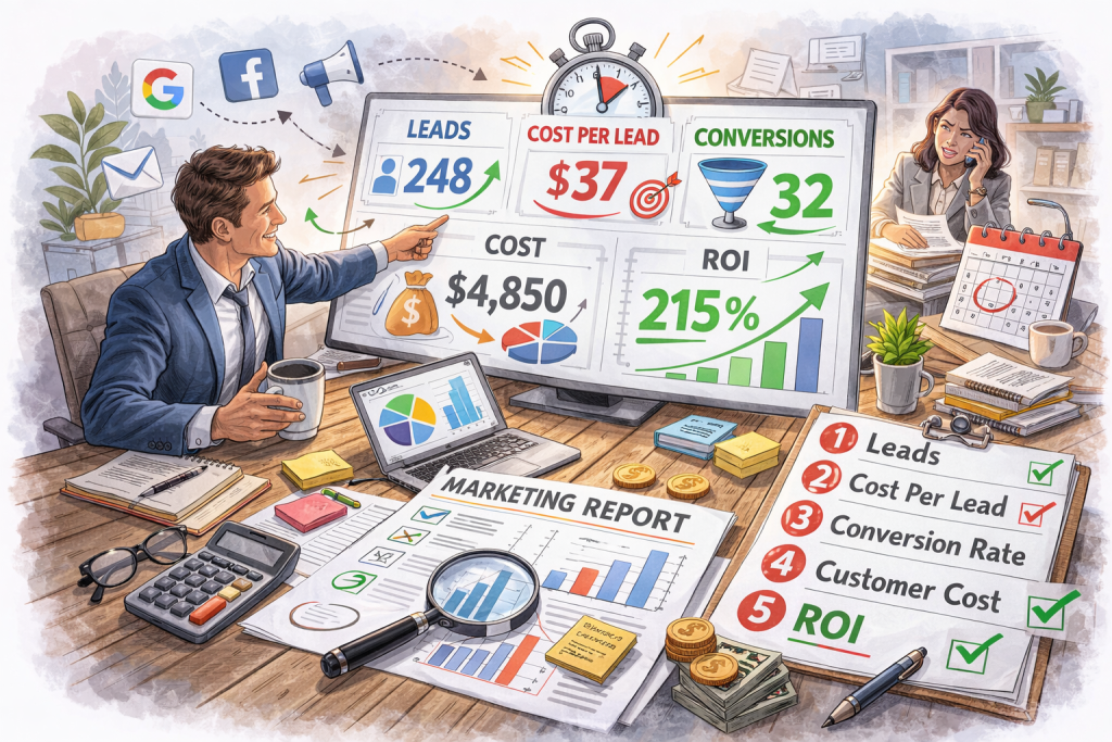 Every month, the agency sends a report. It is 12 to 20 pages long. It has charts. It has numbers you do not fully understand. It has arrows that point up, which the agency says is good. It takes 45 minutes to read, and by the end you are not sure whether the marketing is working or not.