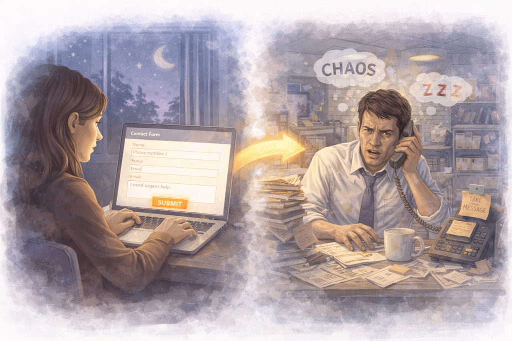 1. The prospect is anxious. They are dealing with a legal deadline, a government notice, or a family crisis. They are not casually shopping. They want to know that someone received their message and will help them. Silence feels like rejection.